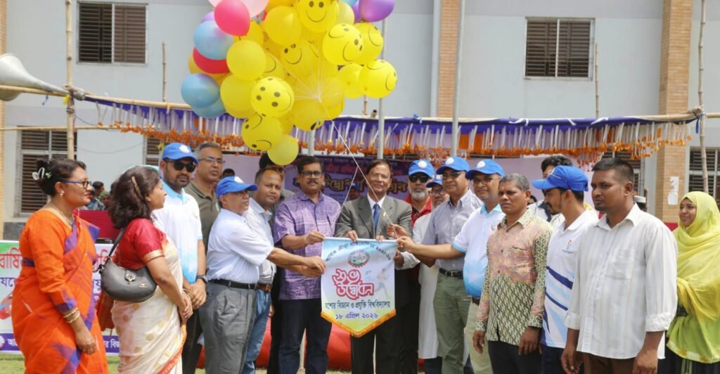 যশোর বিজ্ঞান ও প্রযুক্তি বিশ্ববিদ্যালয়ে (যবিপ্রবি) বর্ণাঢ্য আয়োজনের মধ্য দিয়ে শুরু হয়েছে বার্ষিক ক্রীড়া প্রতিযোগিতা-২০২৬। জাতীয় সংগীত পরিবেশন, জাতীয় পতাকা,বিশ্ববিদ্যালয় ও অলিম্পিকের পতাকা উত্তোলন, বেলুন-ফেস্টুন উড়ানো এবং শপথ গ্রহণসহ নানা আয়োজনের মধ্য দিয়ে শনিবার (১৮ এপ্রিল) সকাল ১০টায় বিশ্ববিদ্যালয়ের কেন্দ্রীয় খেলার মাঠে এ প্রতিযোগিতার উদ্বোধন করা হয়।