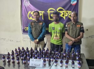 স্ফুলিঙ্গ রিপোর্ট : আজ যশোর ডিবি পুলিশ মাদক হিসেবে ব্যবহৃত ৭৫ বোতল ESKUF সহ একজনকে আটক করেছে।