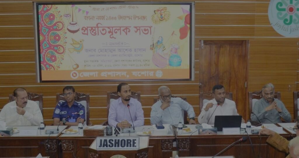 উৎসবের শহর যশোরে বাঙালির প্রাণের উৎসব বাংলা নববর্ষ ১৪৩৩ বরণে শুরু হয়েছে ব্যাপক প্রস্তুতি। বুধবার (৮ এপ্রিল) দুপুরে যশোর কালেক্টরেট ভবনের ‘অমিত্রাক্ষর’ সভাকক্ষে জেলা প্রশাসনের আয়োজনে এক প্রস্তুতি সভা অনুষ্ঠিত হয়। সভায় সিদ্ধান্ত হয়েছে, এবারের মঙ্গল শোভাযাত্রার নাম হবে ‘বৈশাখী শোভাযাত্রা’ এবং নিরাপত্তার স্বার্থে শোভাযাত্রায় মুখে কোনো মুখোশ পরা যাবে না।